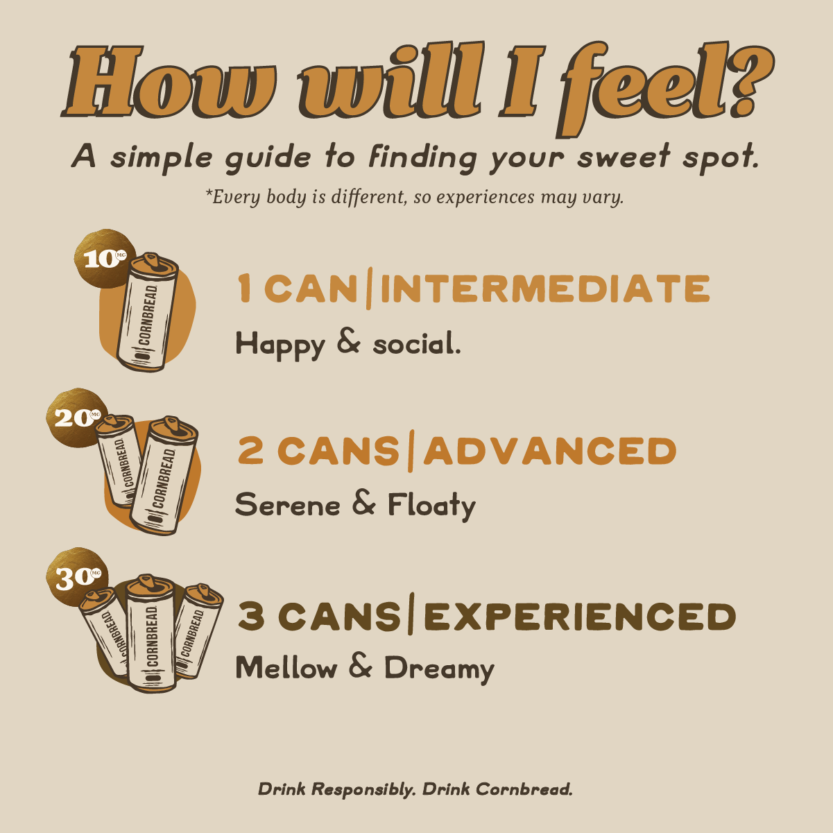 Folks new to THC drinks can ease into the experience with a half can. With a Cornbread THC Seltzer, you're able to fine-tune your buzz. Just remember, sip 'em slow & savor the good life.