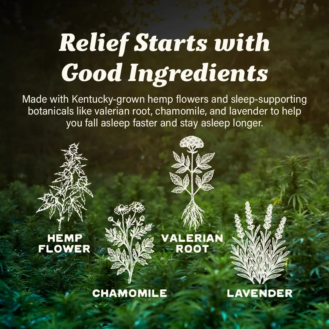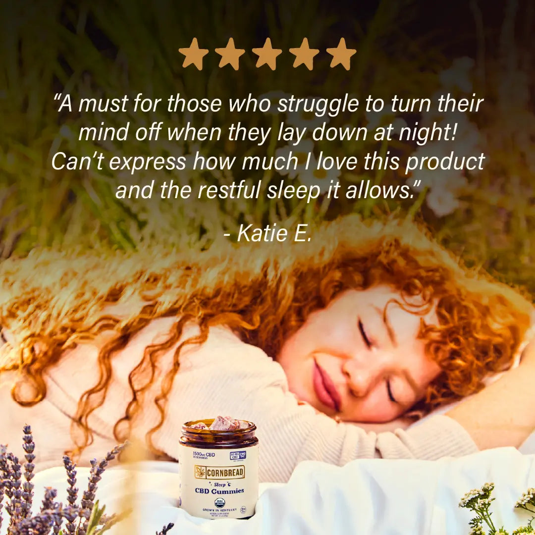 Melatonin-free sleep. Cornbread Hemp’s CBD Sleep Gummies combine USDA organic full spectrum CBD with sleep-supporting botanicals like valerian root, chamomile, and lavender to help you fall asleep faster and stay asleep longer, without the melatonin hangover.