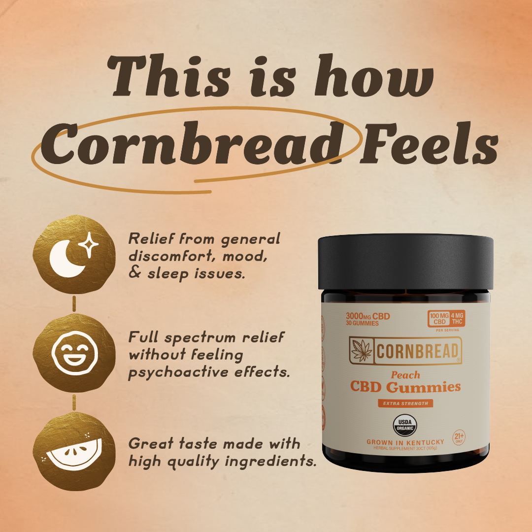 Cornbread Hemp THC gummies are made with a proprietary hybrid strain of cannabis that qualifies as hemp under federal law because the THC concentration is below 0.3 percent. This hemp strain is a hybrid of indica and sativa cannabis plants.