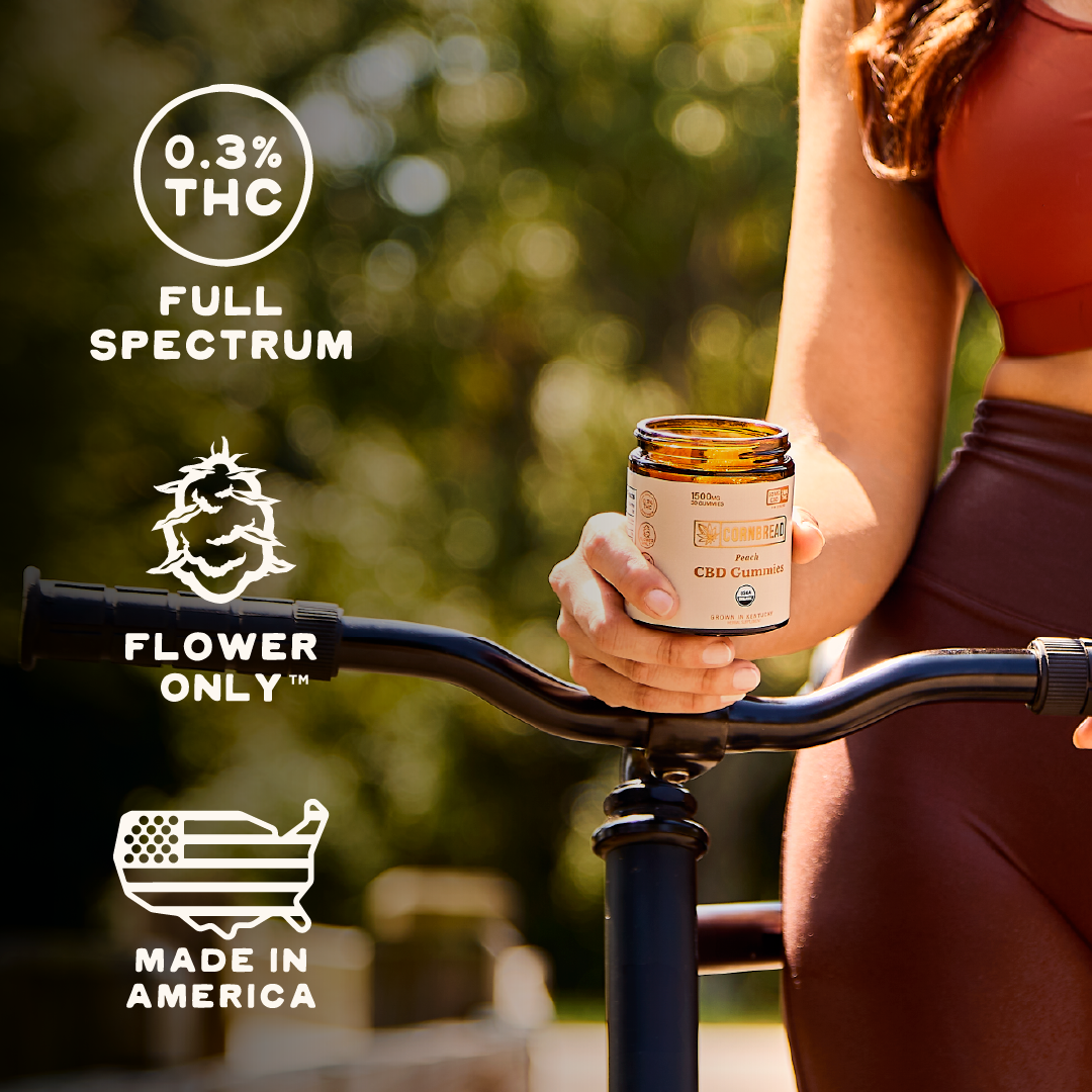 Our Full Spectrum Peach CBD Gummies include up to 4mg of THC per serving. Made with organic peaches and Kentucky-grown hemp flowers. Vegan, gluten-free, and free of artificial colors and preservatives.