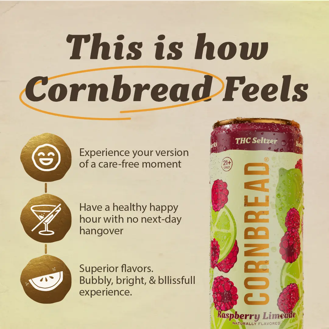 Folks new to THC drinks can ease into the experience with a half can. With a Cornbread THC Seltzer, you're able to fine-tune your buzz. Just remember, sip 'em slow & savor the good life.