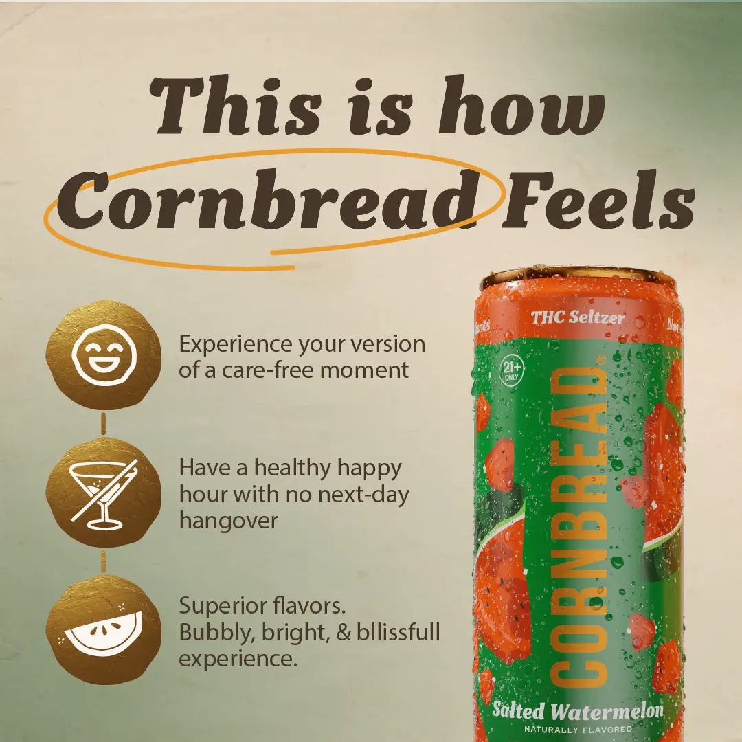 Folks new to THC drinks can ease into the experience with a half can. With a Cornbread THC Seltzer, you're able to fine-tune your buzz. Just remember, sip 'em slow & savor the good life.